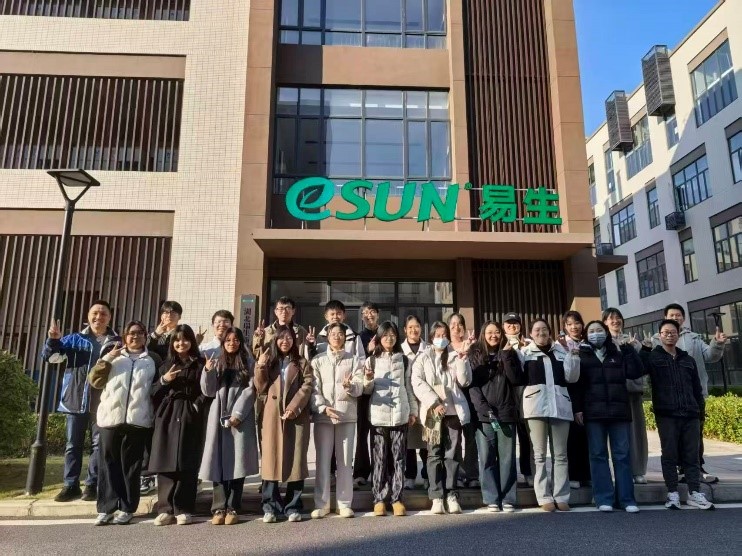 在研发人员的带领和讲解下,同学们走进易生新材料武汉创新中心的实验室进行实地参观,观察了聚乳酸材料的各类样品,并在3D打印、复合材料制备等实操设备前驻足交流,切身感受到材料科技的转化应用与企业创新文化,对生物基材料的广阔前景有了更直观深刻的理解。