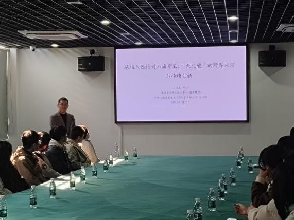 在交流活动中,石道昆博士以“从植入器械到石油开采:‘聚乳酸’的跨界应用与持续创新”为核心主题进行讲解,深入介绍了聚乳酸类材料在多领域的拓展与应用前景。石博士指出,聚乳酸凭借其生物相容性、可降解性、结构可设计性以及生物基来源等优势,已从传统医疗植入器械成功跨界至石油开采等工业领域。并现场展示了聚乳酸在FDM通用3D打印、光学模材及石油压裂暂堵剂等方面的创新应用。