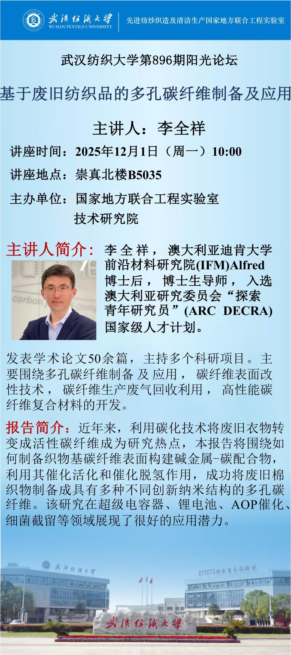 阳光论坛—基于废旧纺织品的多孔碳纤维制备及应用